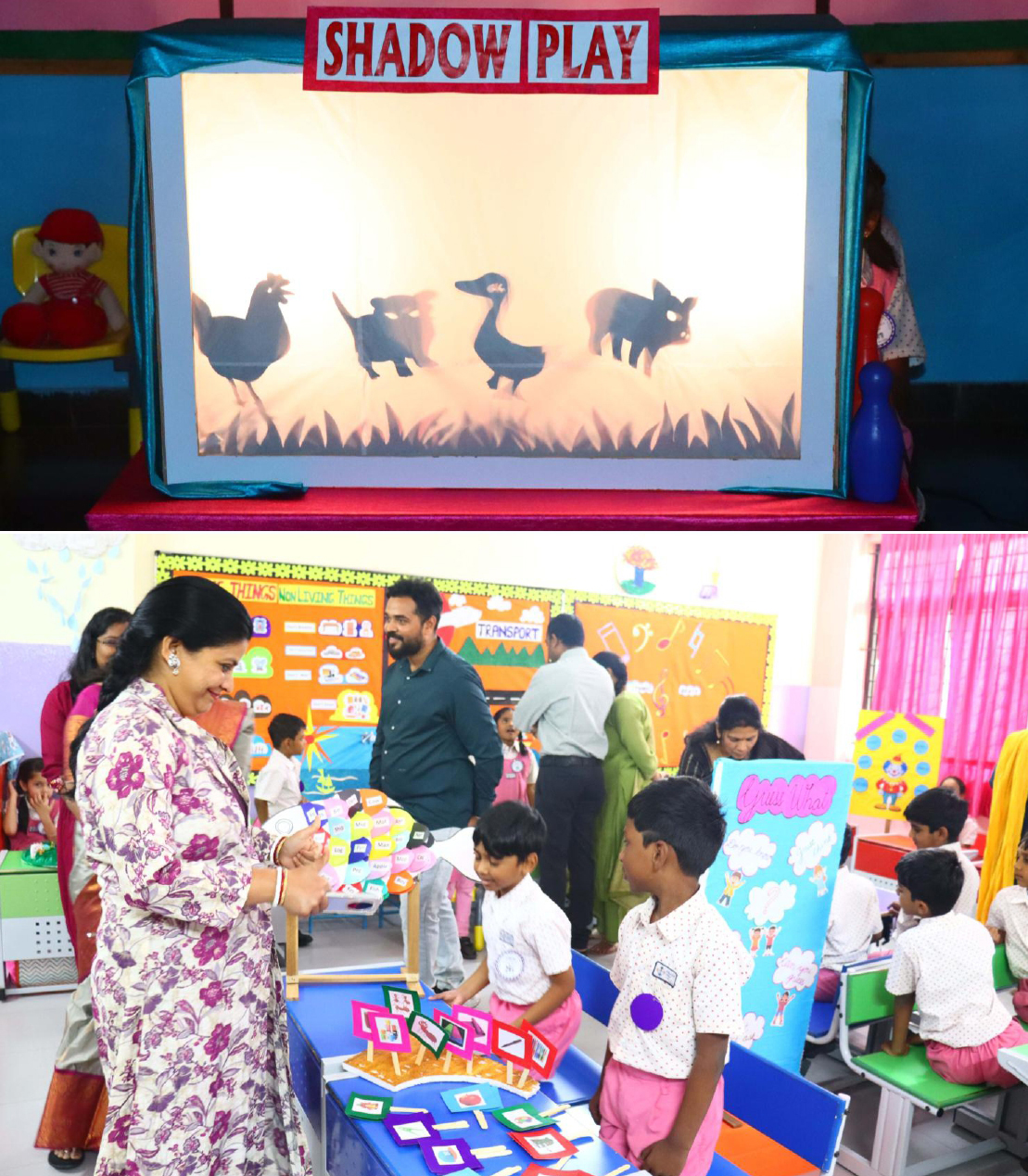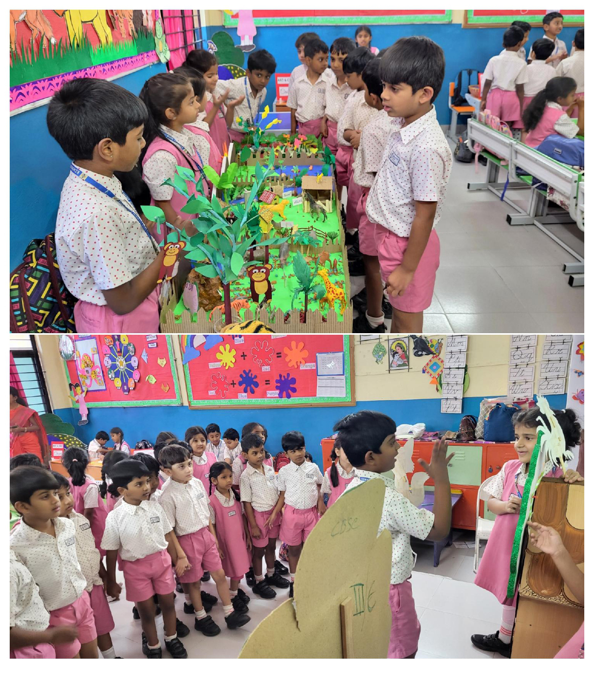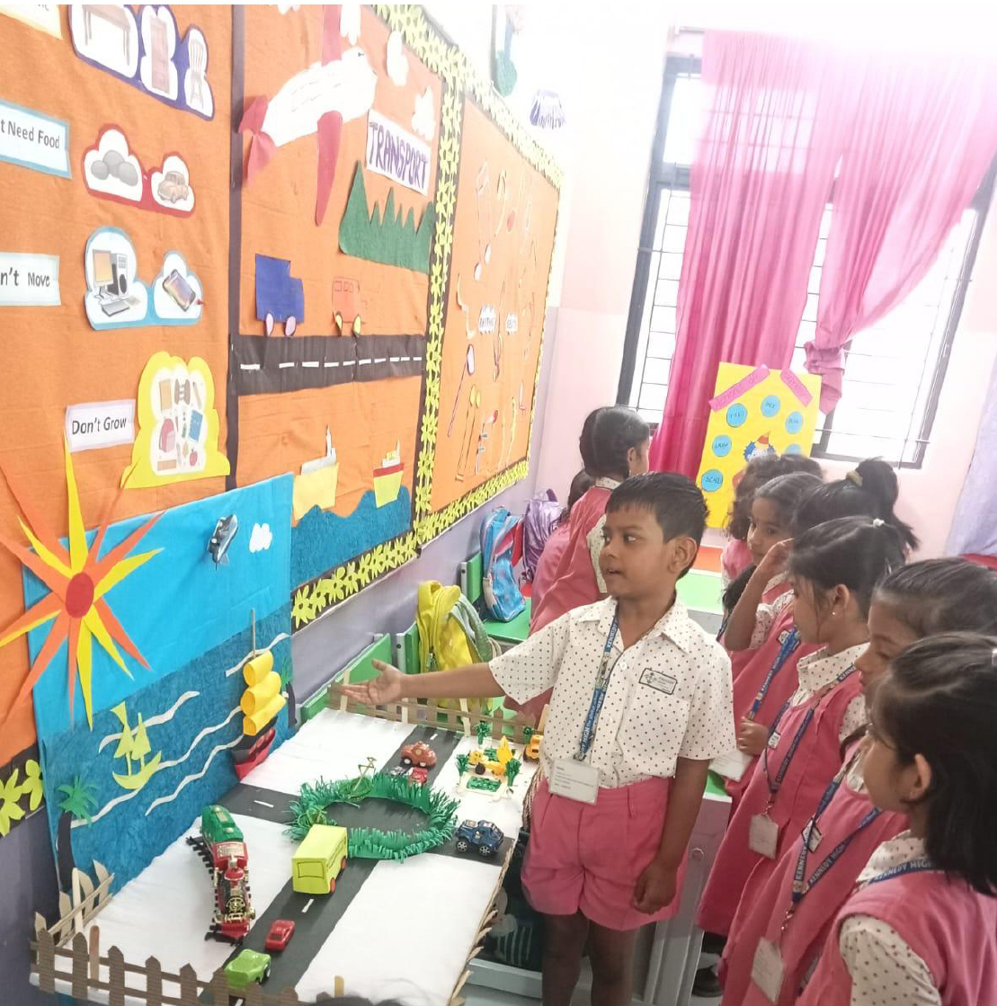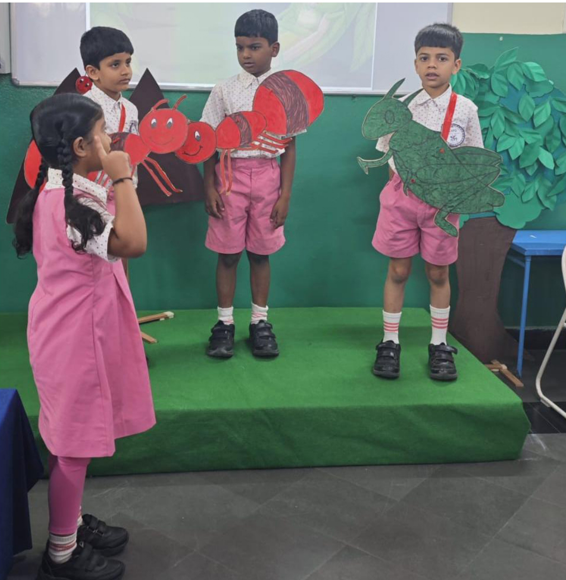 Activities like Story narration, Shadow play, Pointing words, Roll and Retell, Early Math Adventures, Jump, Skip and Score, Food from Farm to Table, Water on Earth, Fly, Drive and Sail, Art with Numbers, Crafts of Animal faces, and Fun games sparked curiosity and connect theoretical knowledge to practical applications.