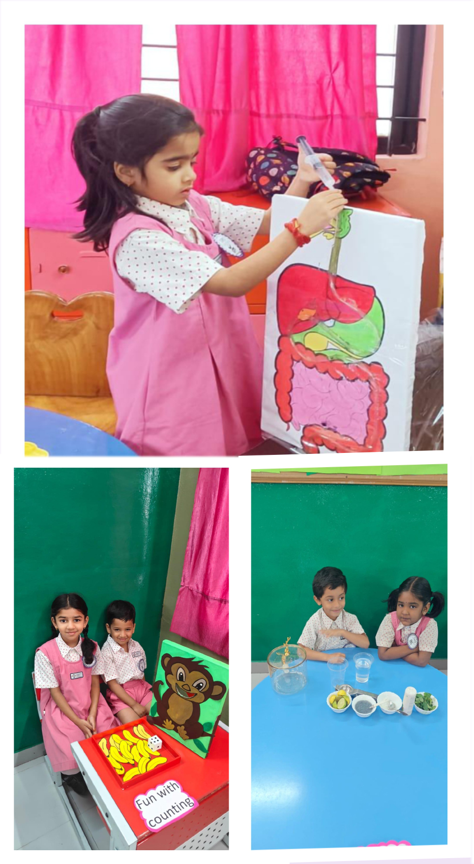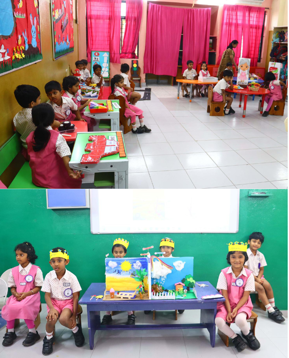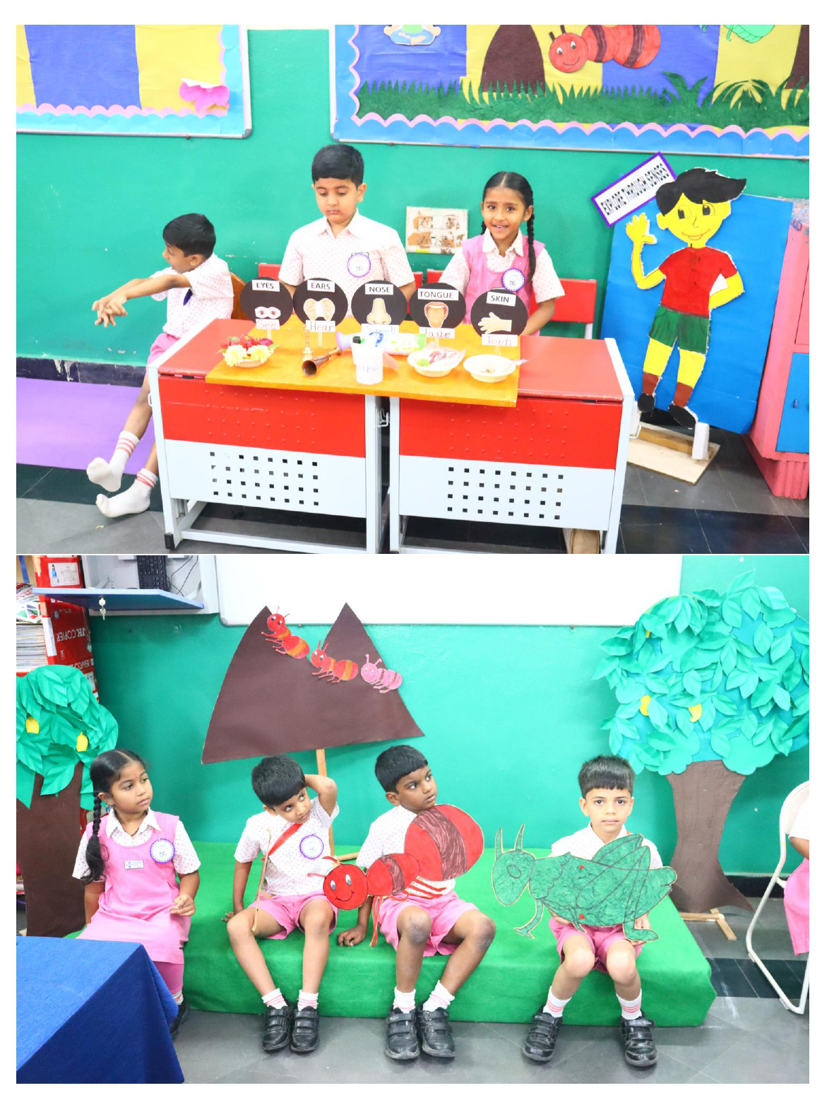 Activities like Story narration, Shadow play, Pointing words, Roll and Retell, Early Math Adventures, Jump, Skip and Score, Food from Farm to Table, Water on Earth, Fly, Drive and Sail, Art with Numbers, Crafts of Animal faces, and Fun games sparked curiosity and connect theoretical knowledge to practical applications.