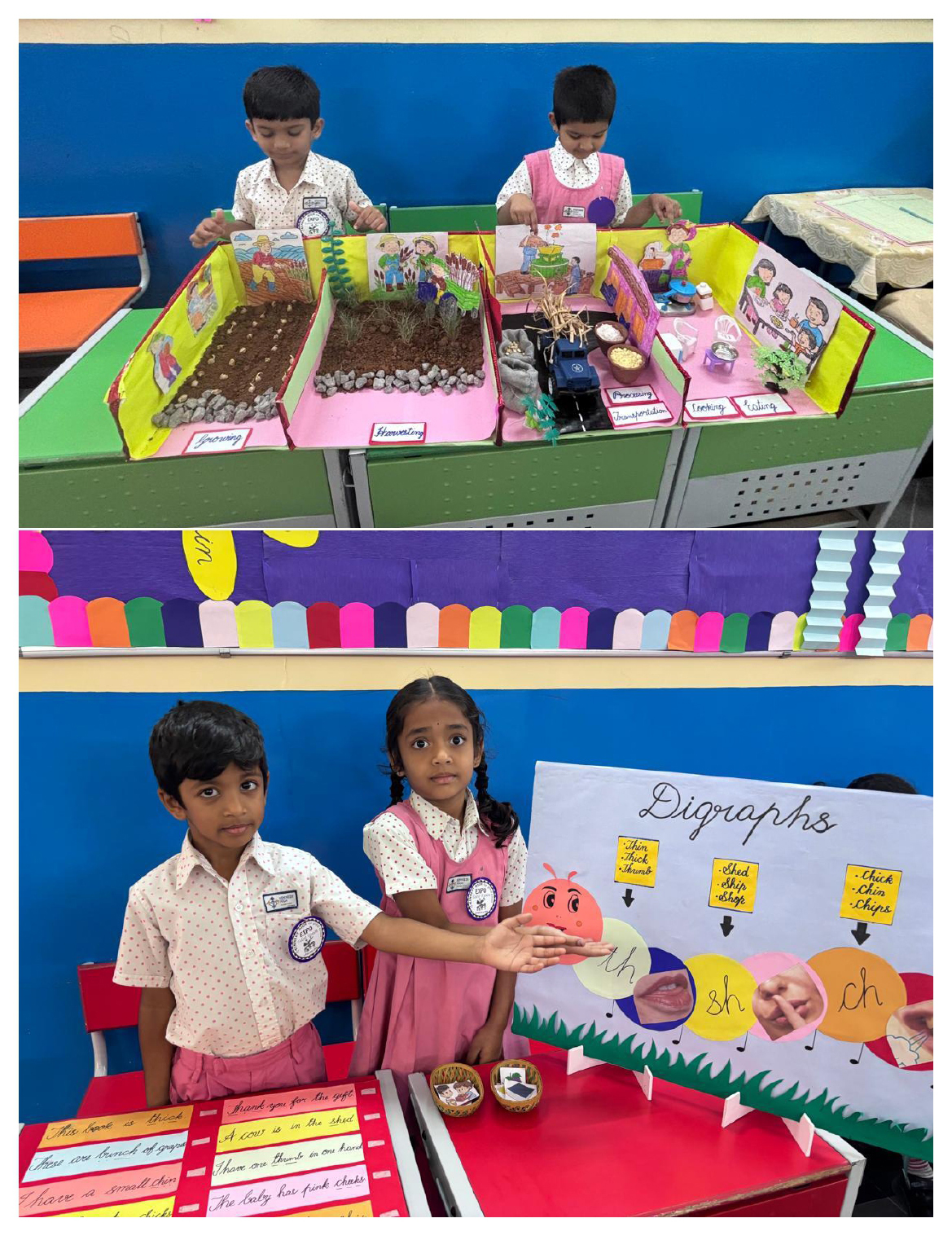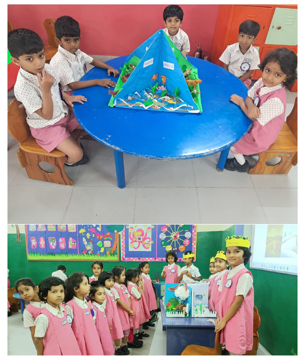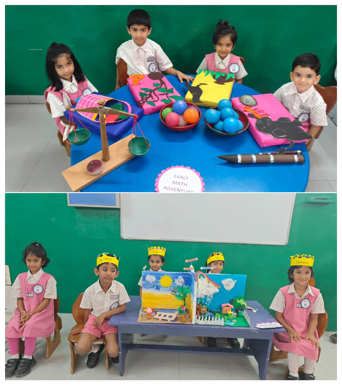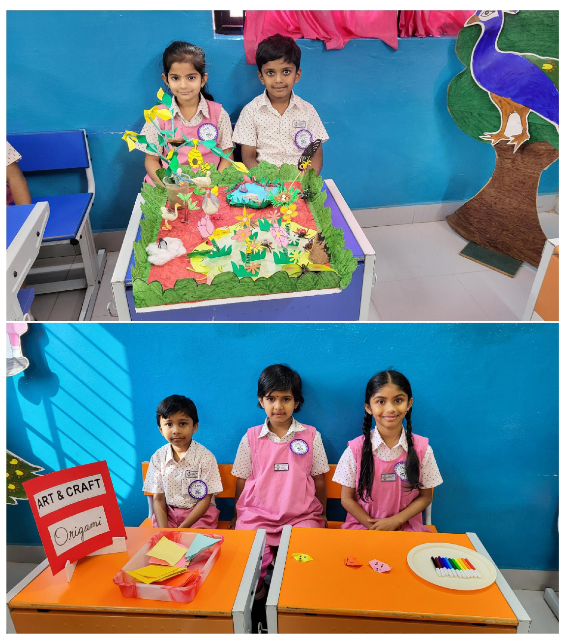 Activities like Story narration, Shadow play, Pointing words, Roll and Retell, Early Math Adventures, Jump, Skip and Score, Food from Farm to Table, Water on Earth, Fly, Drive and Sail, Art with Numbers, Crafts of Animal faces, and Fun games sparked curiosity and connect theoretical knowledge to practical applications.